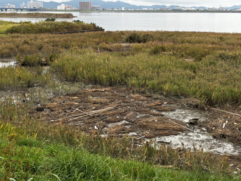 大量の漂着ごみがシオマネキの住み家をおおって困っていますシオマネキの生息地を守ろう! 吉野川河口干潟のクリーンアップ