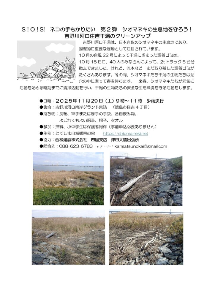 ●主催:とくしま自然観察の会 https://shiomaneki.net